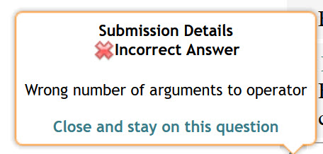 You may see a “Wrong number of arguments to operator” error when submitting your answer.