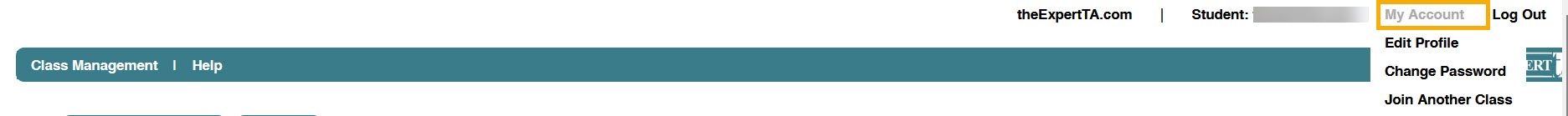 The Edit Profile option is found in the My Account menu on the Class Management page.