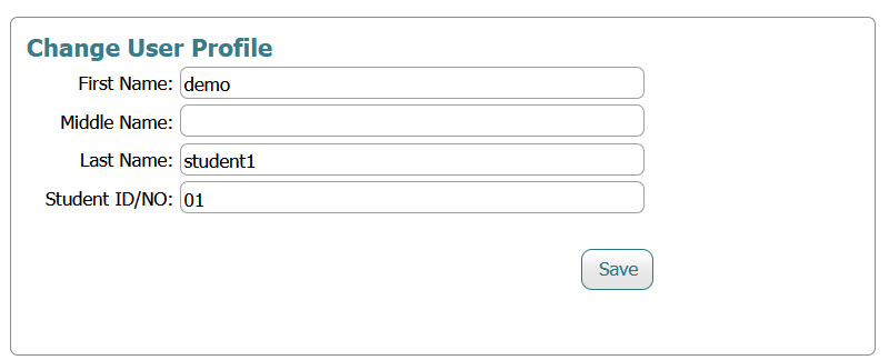 If you need to update your name or student ID after registration, click the Edit Profile button on this screen. A new page will open where you can edit your First Name, Middle Name, Last Name, and Student ID/NO.