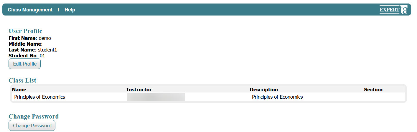 Clicking it takes you to a screen showing how your name appears in the system and a list of your current classes.