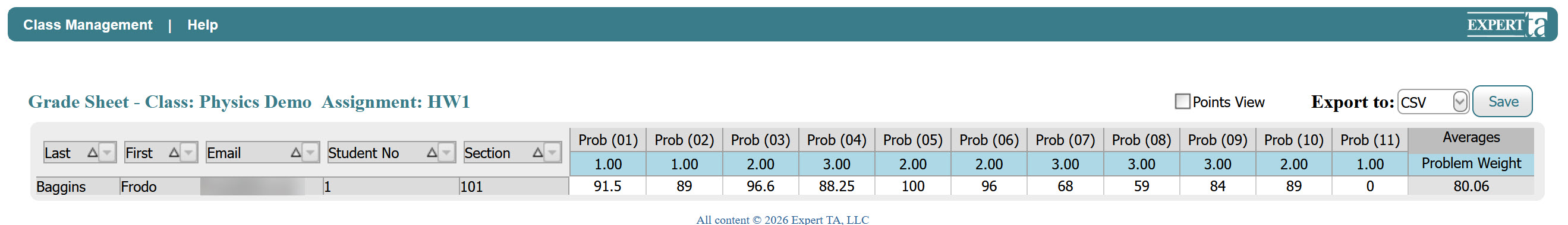To exit the grade spreadsheet, click Class Management in the upper-left corner to return to the Class Management page.