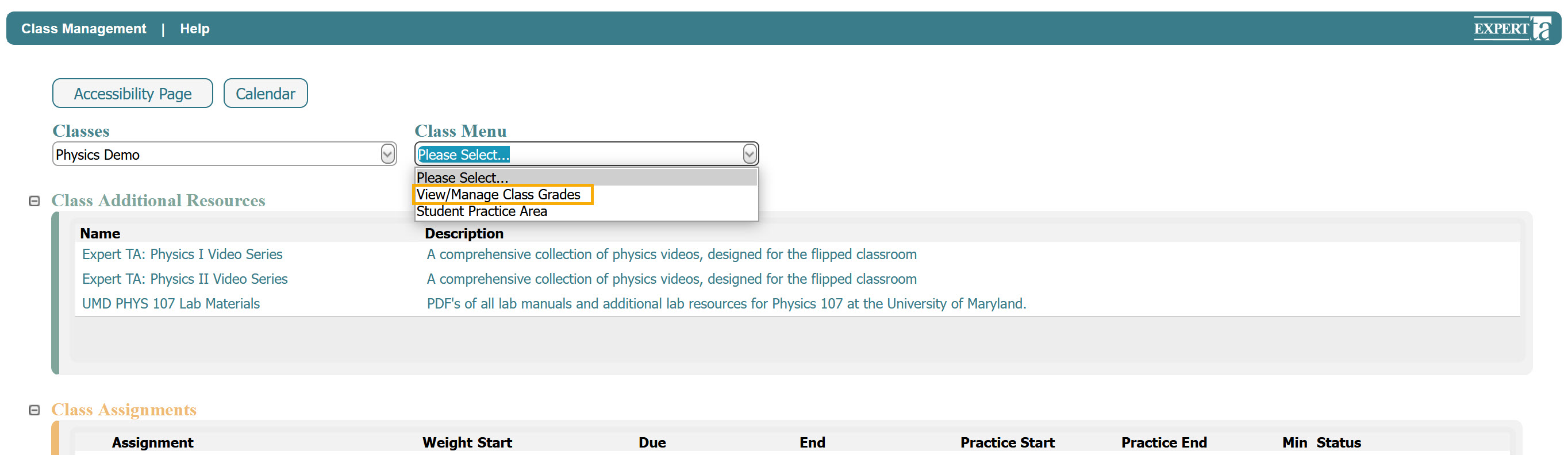 View/Manage Class Grades