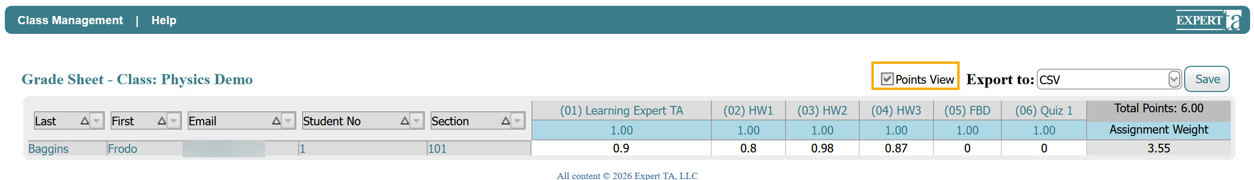 You can also switch between percentage and points views by selecting the Points View checkbox.